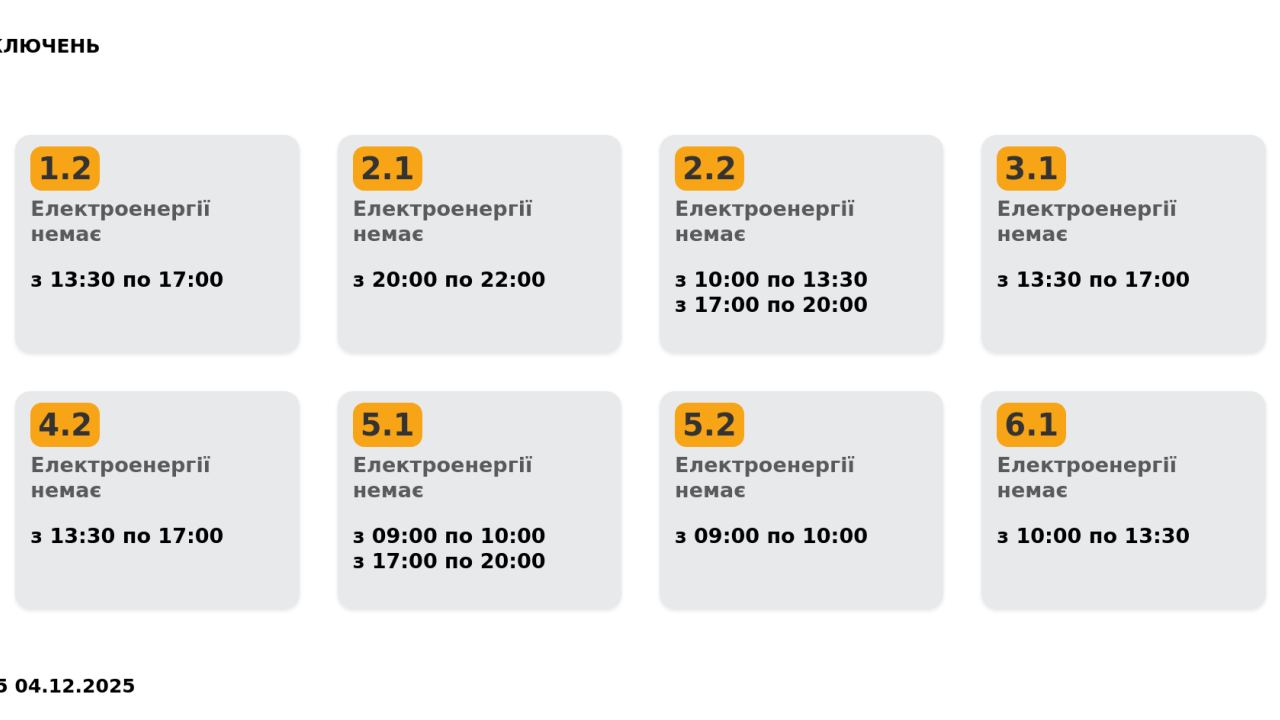 Графік погодинного відключення електроенергії у Львівській області у четвер, 4 грудня: