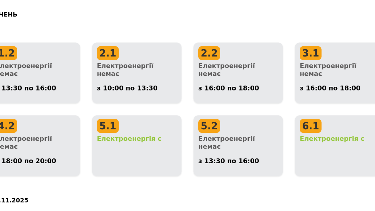 Для всіх інших підгруп споживачів електроенергії буде діяти учорашній варіант графіка погодинних відключень: