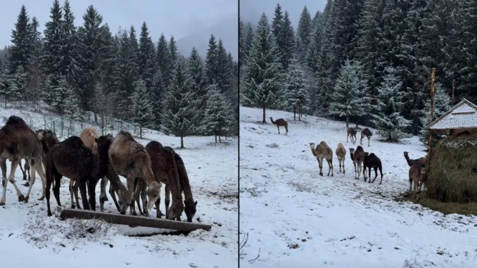 Холодне диво: як верблюди, альпаки та лами реагують на перший сніг у біопарку на Закарпатті (ВІДЕО) –