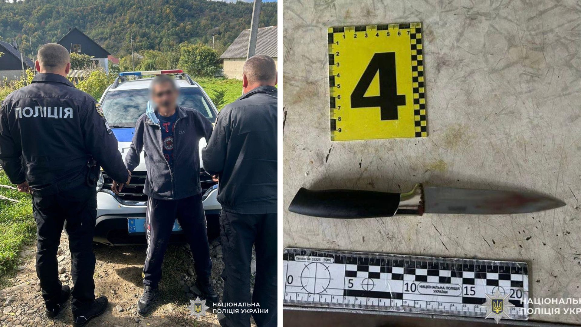50-річного підозрюваного затримали на місці події, його поміщено до ізолятора тимчасового тримання. Знаряддя злочину — ніж — вилучено.