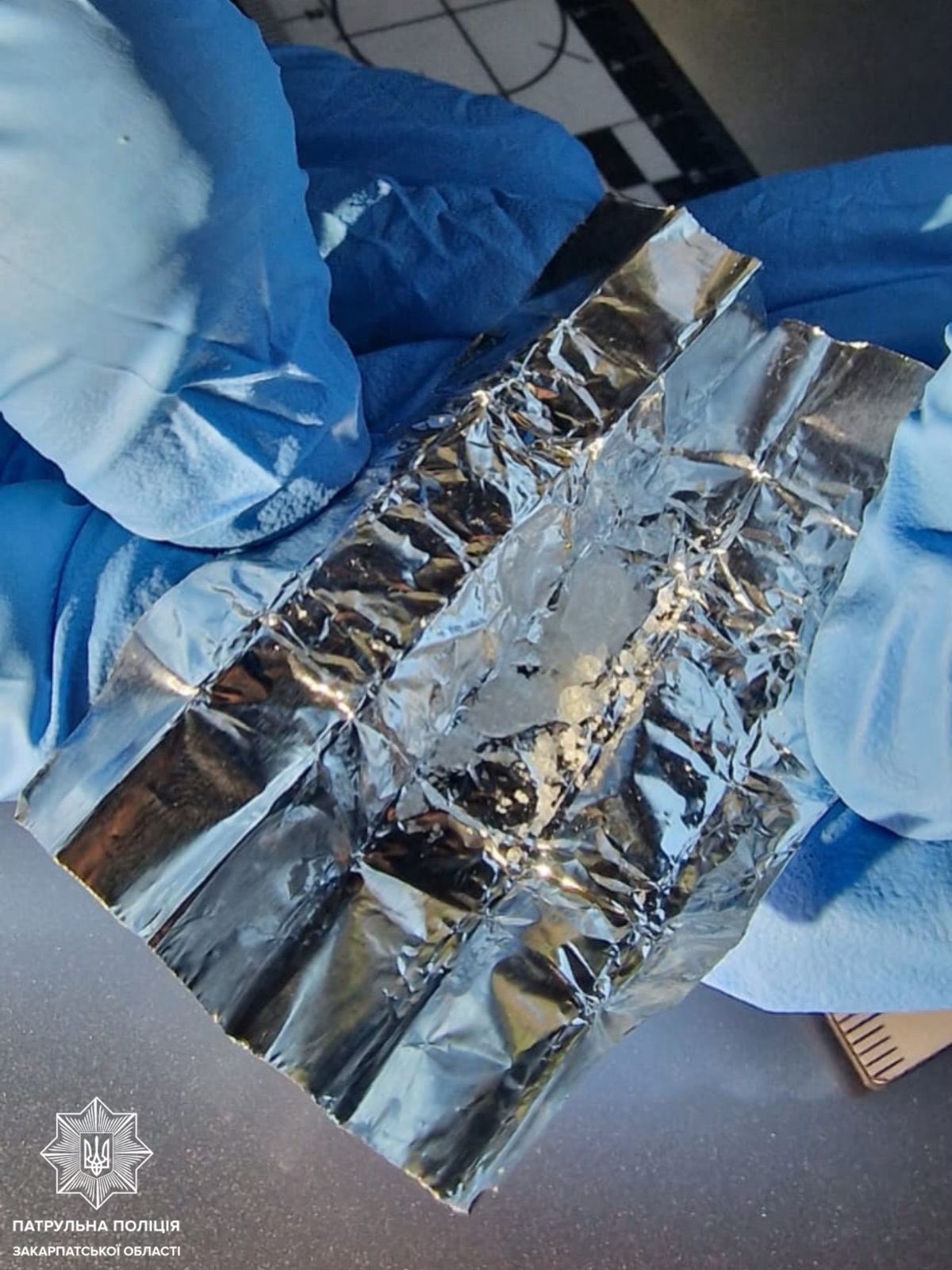 Учора, у Мукачеві, на вулиці Підгорянській, патрульні поліцейські зупинили автомобіль Skoda, водій якого порушив правила дорожнього руху. Звичайна перевірка перетворилася на справжнє викриття. Під час спілкування з правоохоронцями чоловік помітно нервував, що викликало підозру. Інспектори провели поверхневу перевірку, у ході якої в сумці водія знайшли зіп-пакет із подрібненою зеленою речовиною, схожою на наркотичну. А у гаманці — фольгу з білою кристалічною речовиною, імовірно метамфетаміном.
