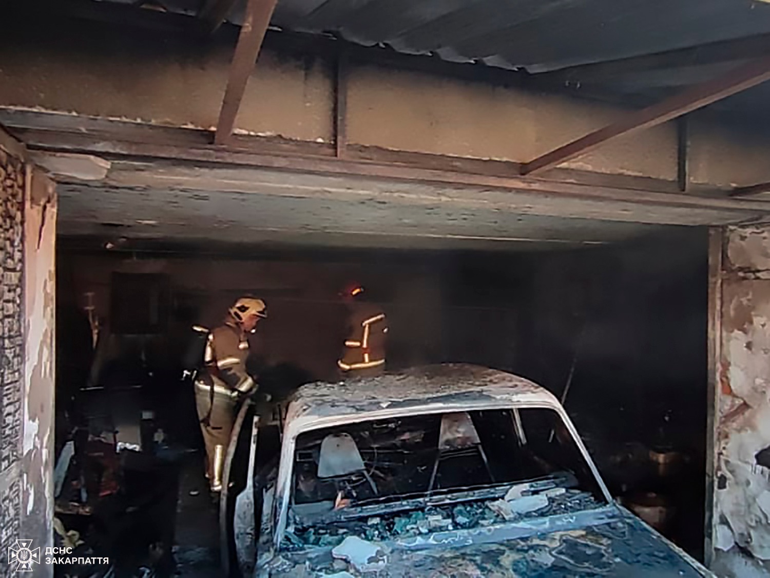 До Служби порятунку надійшло повідомлення про пожежу в гаражі на вулиці Михайловецькій в Ужгороді. Задимлення першою помітила сусідка та одразу зателефонувала рятувальникам, повідомивши, що в будинку можуть перебувати люди. Коли вогнеборці прибули на місце, полум’я повністю охопило гараж, розташований на цокольному поверсі житлового будинку. Через сильне задимлення рятувальники працювали в апаратах захисту органів дихання та зору.