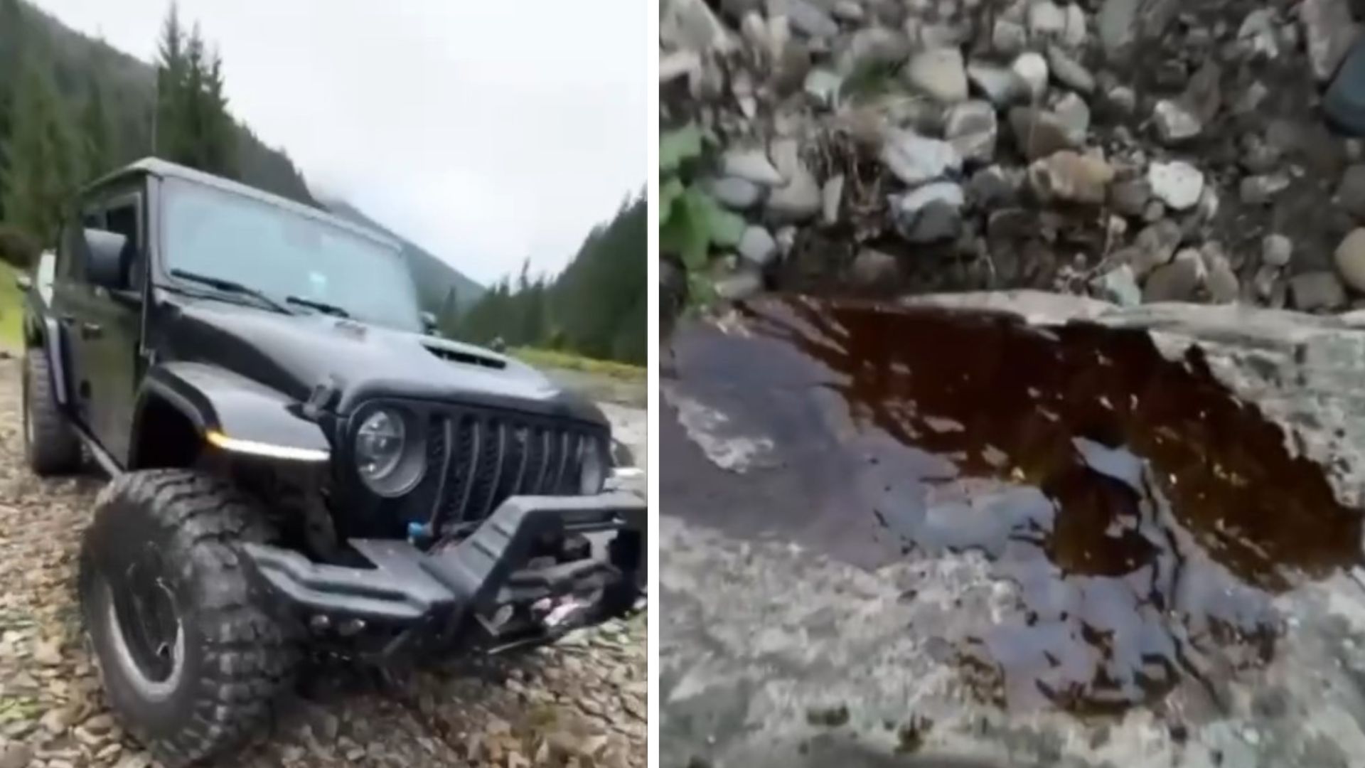 Правоохоронці перевіряють обставини витоку мастила з позашляховика під час гірського рейду.