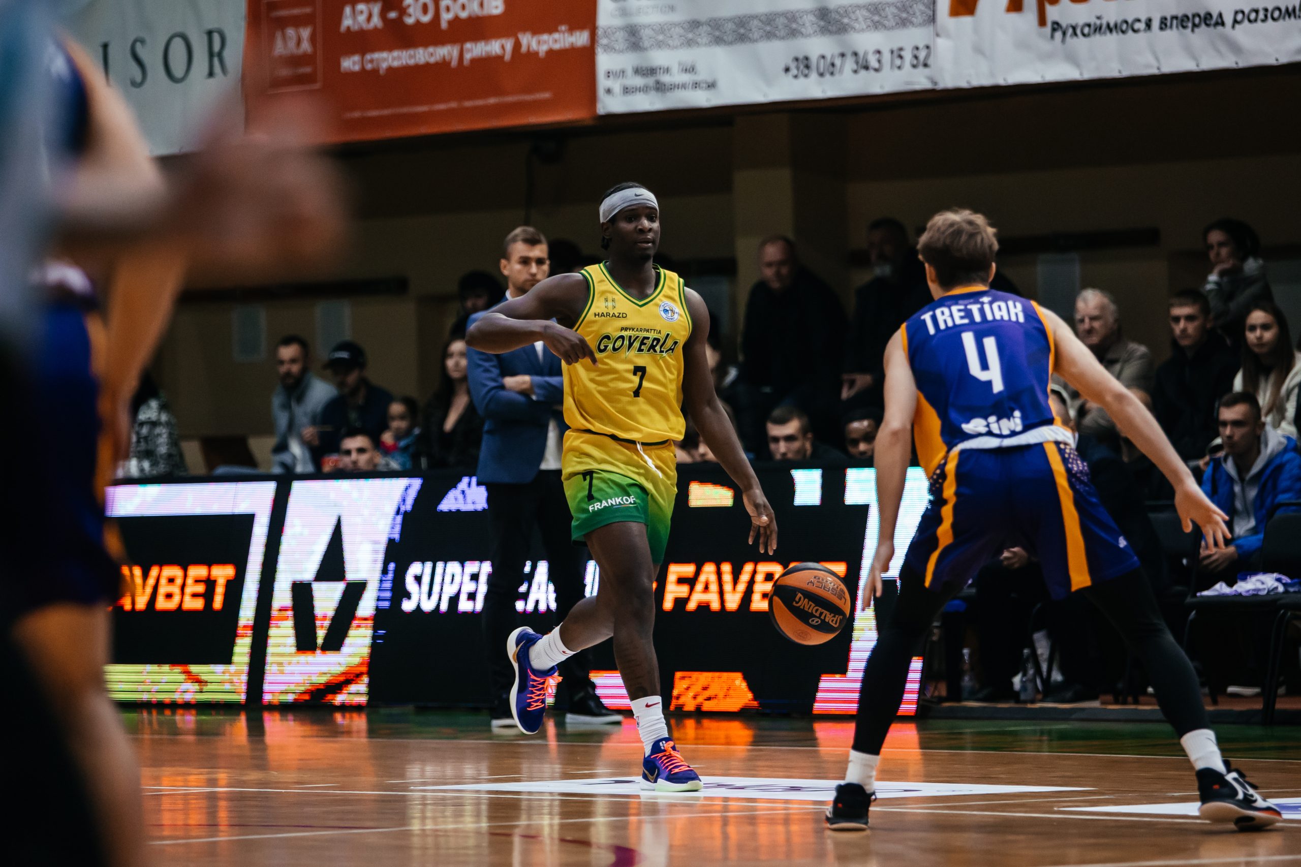 Початок матчу краще дався господарям: Прикарпаття-Говерла видала потужний старт, видавши ривок 13-4. Активно діяв в атаці Володимир Дроздов. Лише у першій чверті івано-франківці відзначилися трьома реалізованими триочковими кидками: їх авторами стали Дроздов, Морозов та Рід. Під завісу першої чверті яскравий данк до свого активу записав Владислав Іванов. Як не намагалися гості відновити баланс в рахунку, до кінця першої чверті це їм не вдалося – 28:13 на користь Прикарпаття-Говерли.