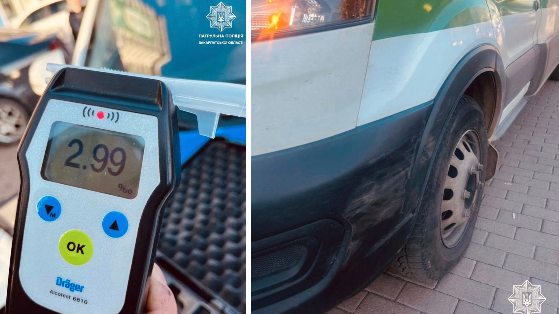 Учора вдень на вулиці Легоцького в Ужгороді сталася ДТП. На парковці торгового центру водій автомобіля Mazda не дотримався безпечного бокового інтервалу та дистанції й зіткнувся з іншим авто. Під час спілкування з кермувальником патрульні помітили ознаки алкогольного сп’яніння. Огляд на місці показав 2,99‰ алкоголю в крові — це майже у 15 разів перевищує допустиму норму.