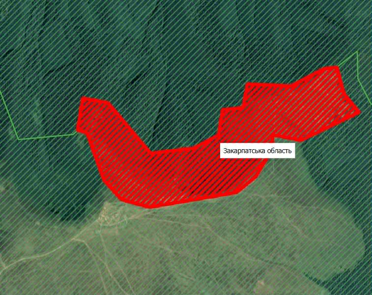 Колаж з мап, що показує землю на полонині Рівна, що фігурує у рішенні сільради і у контексті повідомлення планованої діяльності ТОВ «Вест-Інвес Енерджі»