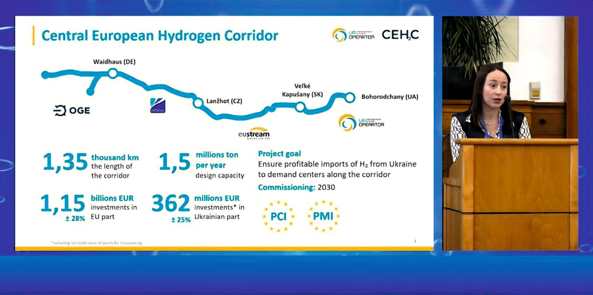 У листопаді 2024 року двоє представників України взяли участь у Чеському діалозі щодо водневої магістралі. Одним із них була керівниця відділу стратегії О ГТС України Катерина Коваленко. Вона продемонструвала найбільш детальну схему Центральноєвропейського водневого коридору.