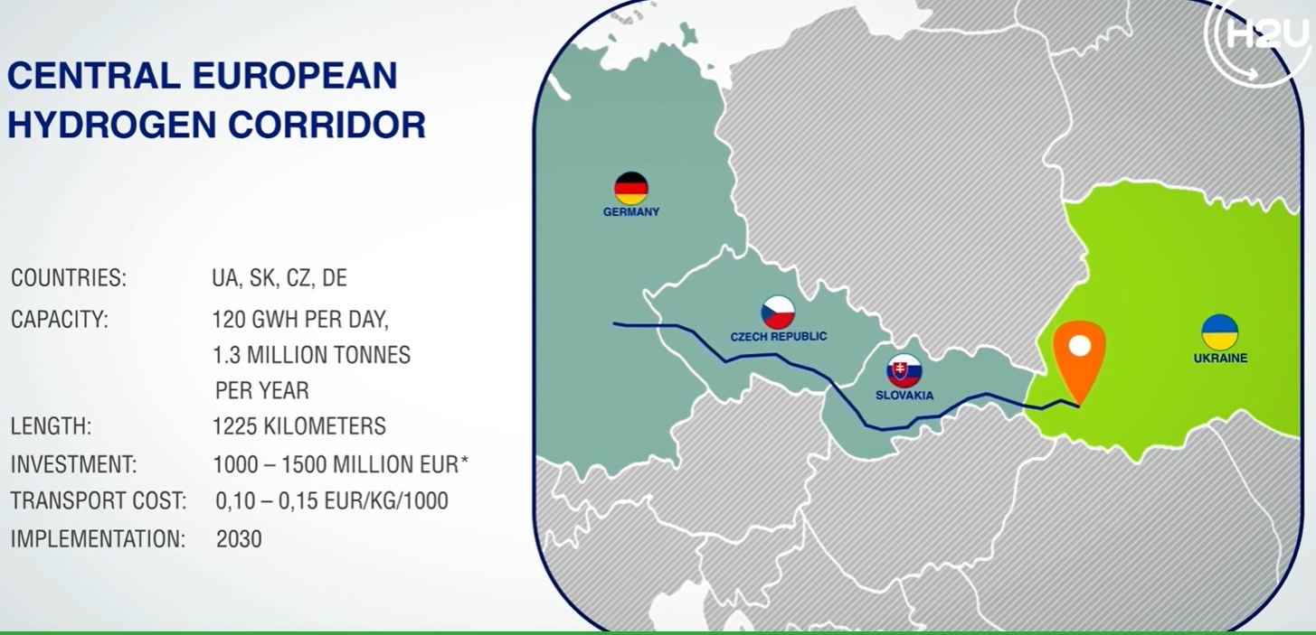 Далі газогін піде до 40-ї компресорної станції біля селища Воловець у Закарпатській області. Це остання станція перед Ужгородом – кінцевим пунктом на території України, де є і газосховище, і компресорна станція. Наступний пункт – уже на території Словаччини, в районі компресорної станції біля міста Вельке-­Капушани. Ще одним ключовим містом для водневого коридору стане чеське прикордонне містечко Ланж­гот, де ще одна розподільча станція того самого газогону "Братство". Кінцевою точкою Центральноєвропейського водневого коридору має стати німецьке місто Вайнхаус біля кордону з Чехією. У результаті його довжина становитиме 1350 км. Ним планують транспортувати в Європу 1,5 мільйона тонн водню на рік.