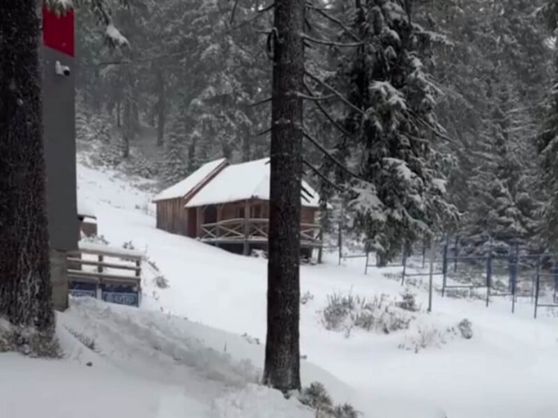 На одному з відео, які опублікували в Telegram-каналі, видно, як, за повідомленнями ЗМІ, “на горі біля п’ятого підйомника” в Буковелі схил і дерева рясно вкриті снігом.