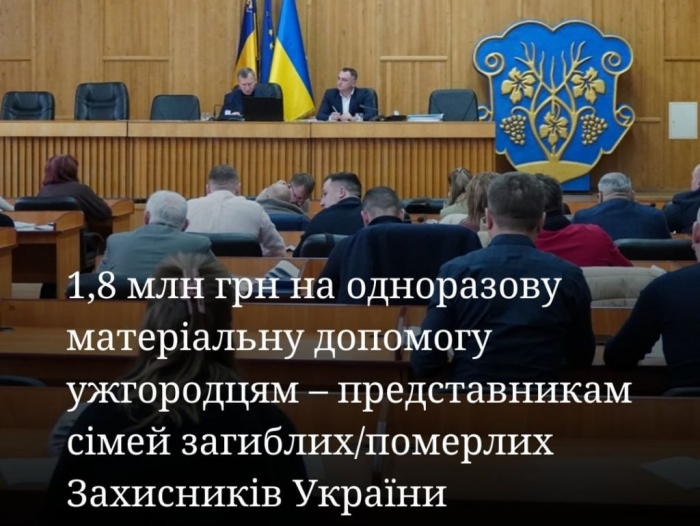 Надання одноразової допомоги згідно з Програмою підтримки сімей загиблих/померлих, військовополонених та безвісти відсутніх Захисників України на 2023-2025 роки одноголосно підтримали напередодні на черговому засіданні сесії Ужгородської міської ради.