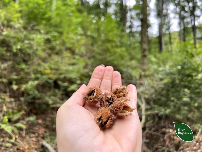 «Букові горішки збираємо вручну після їх опадання. Кожен етап заготівлі потребує особливої уваги. В урожайні роки з гектара чистих букових насаджень можна зібрати в середньому 200–300 кг насіння. Це справа непроста і потребує значних трудових затрат. Проте саме від якості насіння залежить успіх лісовідновлення в Карпатах і стан майбутніх поколінь букових лісів», – розповідають лісівники Свалявського надлісництва, у якому зібрали майже 240 кг букових горішків.