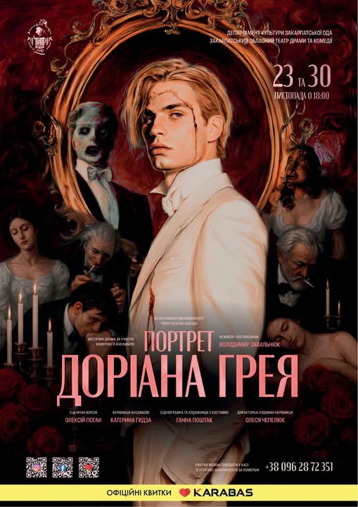 Цього разу на сцені театру оживе «Портрет Доріана Грея» – музична містична драма за мотивами твору Оскара Вайльда. В доробку ірландського письменника це – єдиний роман, і його поява прославила автора на весь світ, водночас, неабияк збуривши тогочасне суспільство. Завдяки захопливому сюжету, глибині порушених морально-етичних питань, а також неповторній манері письма відомого «принца парадоксів» Вайльда – цей твір не втрачає актуальності й нині, зокрема, хвилюючи режисерів театру та кіно.