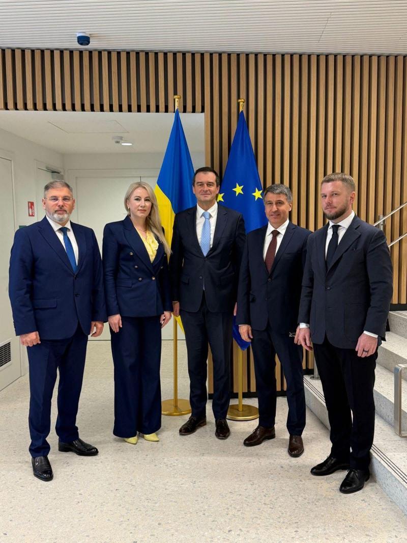 Українська делегація, до складу якої увійшли голови ОВА та по одному представнику місцевого самоврядування, зустрілися у стінах Європарламенту із Послом України в ЄС Всеволодом Ченцовим та заступником Міністра розвитку громад та територій України Олексієм Рябикіним.