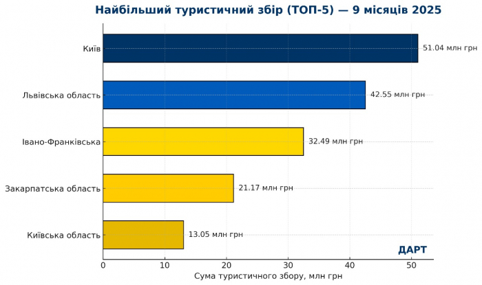 За 9 місяців 2025 року до бюджетів громад країни надійшло понад 234 млн грн туристичного збору.