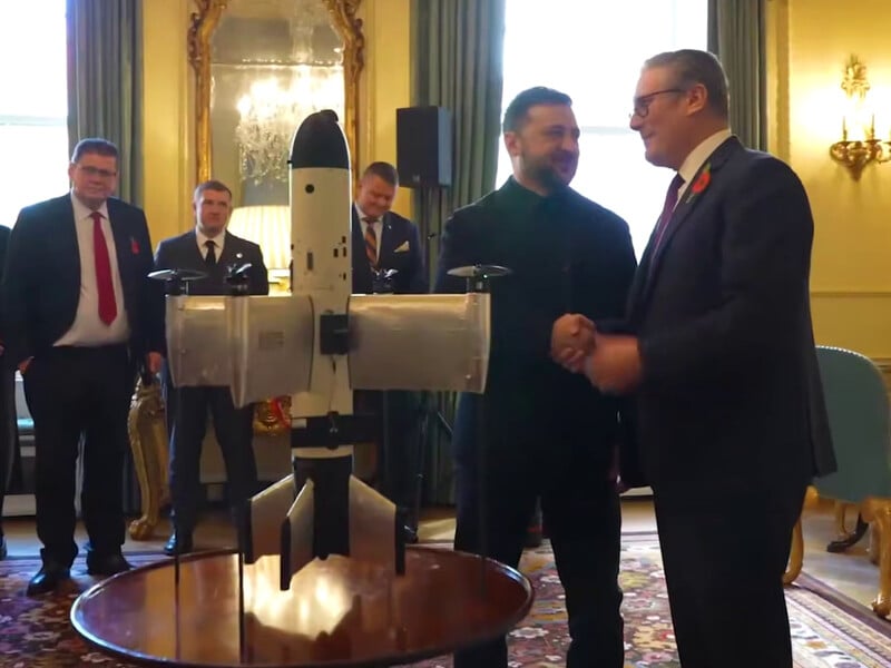 Президент України Володимир Зеленський 24 жовтня продемонстрував прем’єр-міністру Великобританії Кіру Стармеру український дрон-перехоплювач Octopus. Про це він розповів у Тelegram.